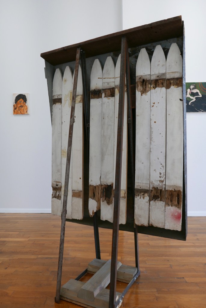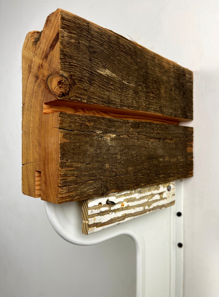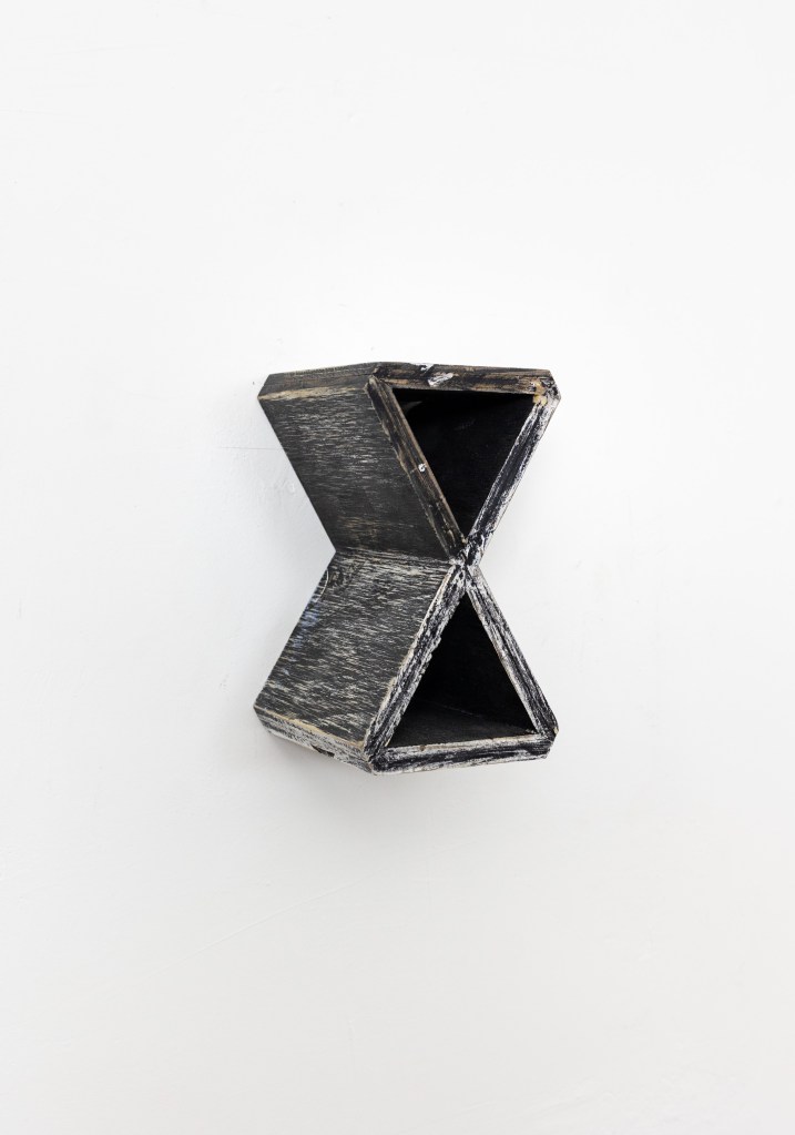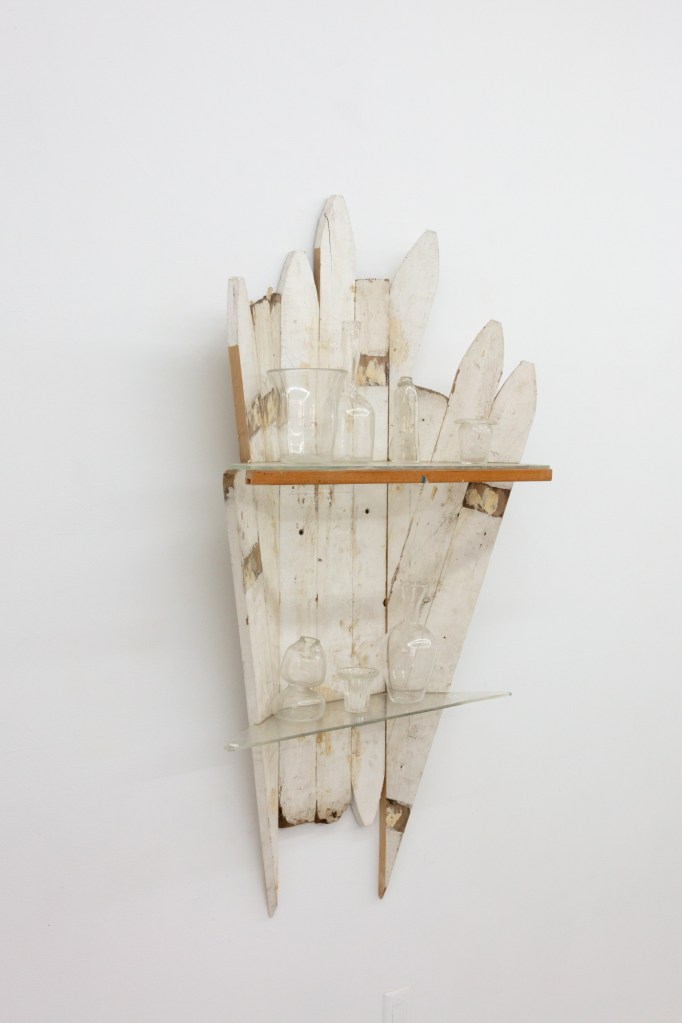 Untitled, 2020-2025 20 1/4 x 20 1/4 x 2 3/4 Found, manipulated, quilt, found frame, artist frame made from found wooden mouldingInstallation view: Barnett’s Candelabra 20 1/4 x 20 1/4 x 2 3/4 Found, manipulated, quilt, found frame, artist frame made from found wooden mouldingFan Piece, 2022- 2024 31.5 x 12 x 10 in Found and manipulated objectsFan Piece, 2022- 2024 31.5 x 12 x 10 in Found and manipulated objectsMindwhip, 2022-2024 40 x 30 in. Paper and acrylic paint on canvas Ground Effect, 2022-2024 40 x 30 in. Paper and acrylic paint on canvas Exegesis, 2022-2024 51.5 x 51.5 in. Acrylic on panel Bi-planar, 2022-2024 21 x 41 in. Acrylic paint on canvasUntitled, 2022 – 2024 24.5 x 18.25 in Acrylic paint on panel The Glass Shelf, 2019-2021 Blown glass elements, found cedar fencing, found plexiglas, found wood 53 x 26 x 9 1/2 in (134.6 x 66 x 24.1 cm)The Glass Shelf, 2019-2021 Blown glass elements, found cedar fencing, found plexiglas, found wood 53 x 26 x 9 1/2 in (134.6 x 66 x 24.1 cm)The Glass Shelf, 2019-2021, detail view Blown glass elements, found cedar fencing, found plexiglas, found wood 53 x 26 x 9 1/2 in (134.6 x 66 x 24.1 cm)Oracle, 2019-202 plywood, found wood, paint, stains, wine 38 1/2 x 30 x 3 inShorting Time 2020-2023, plywood, acrylic paint, wood glue 7 1/2 x 4 1/4 x 5 inShorting Time 2020-2023, plywood, acrylic paint, wood glue 7 1/2 x 4 1/4 x 5 inHexed, 2019 – 2023 cherry, mahogany, walnut, various wood stains and finishes 11 1/2 x 10 1/4 x 5 inFor E.R, 2019-2023 altered found lumber, two nails, used bathtub splash guard, 34 x 3 x 10 inchesFor E.R, 2019-2023 altered found lumber, two nails, used bathtub splash guard, 34 x 3 x 10 inchesFor E.R, 2019-2023, detail view altered found lumber, two nails, used bathtub splash guard, 34 x 3 x 10 inchesDelphi, 2022-2023, detail view altered found wood, wood stains, found metal base 51 1/2 x 10 x 6 inDelphi, 2022-2023, installation view altered found wood, wood stains, found metal base 51 1/2 x 10 x 6 inDelphi, 2022-2023, detail view altered found wood, wood stains, found metal base 51 1/2 x 10 x 6 inDelphi, 2022-2023, installation view altered found wood, wood stains, found metal base 51 1/2 x 10 x 6 inTime’s Teeth, 2021-2022 Found metal container, found fences, steel frame, pine. 59 x 36 x 20Installation view “A Figure In The Shadows” @ Putty’s Coronation