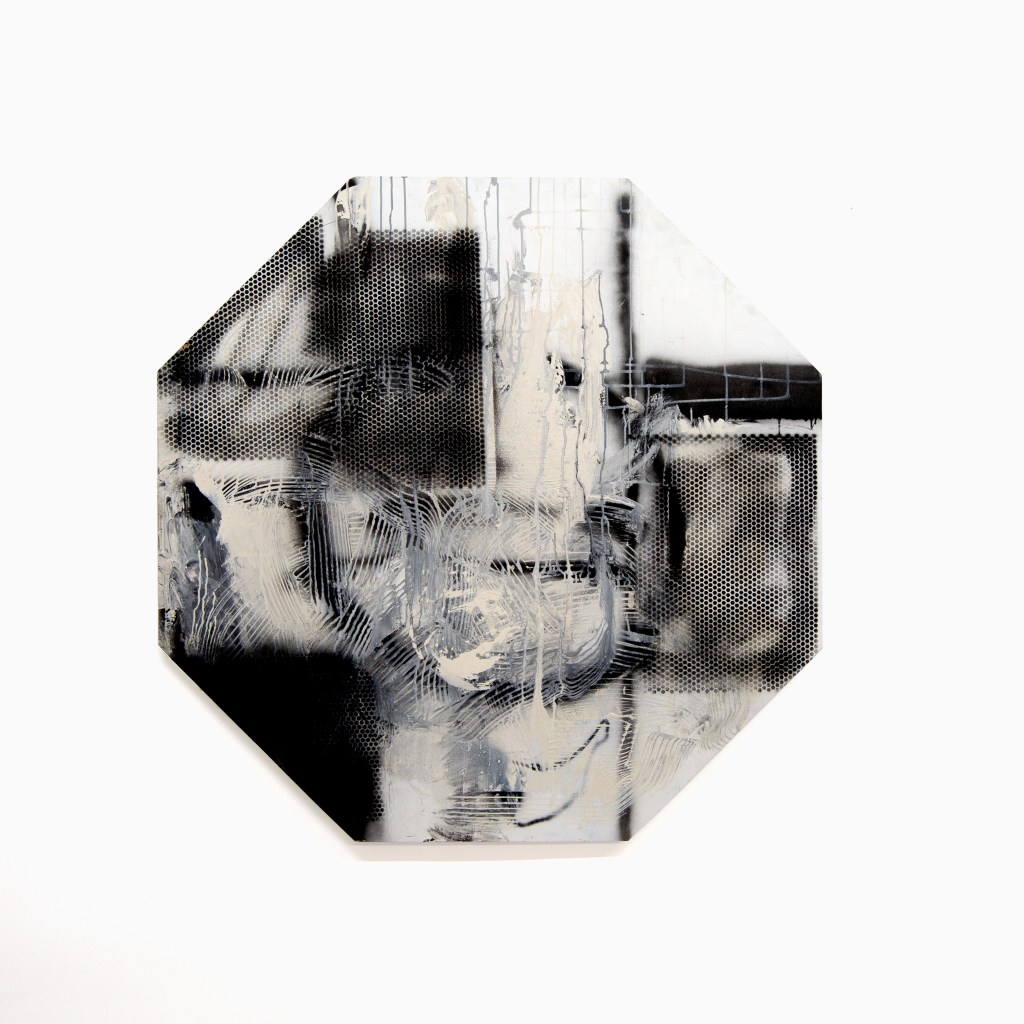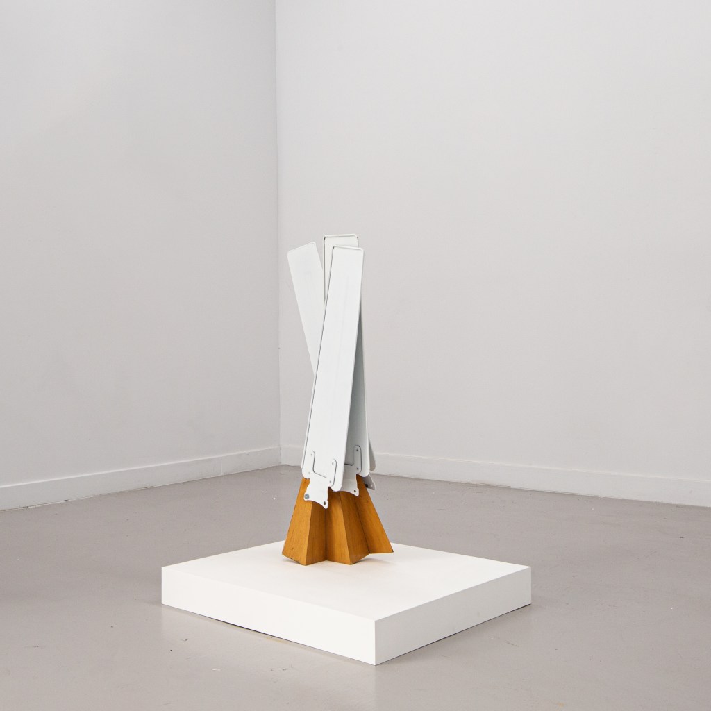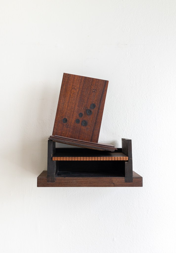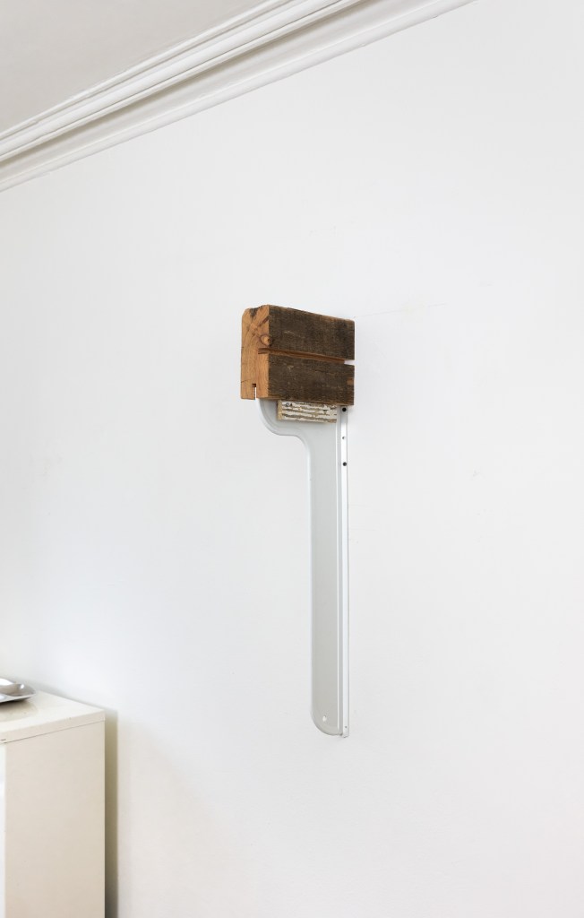 Untitled, 2020-2025 20 1/4 x 20 1/4 x 2 3/4 Found, manipulated, quilt, found frame, artist frame made from found wooden mouldingInstallation view: Barnett’s Candelabra 20 1/4 x 20 1/4 x 2 3/4 Found, manipulated, quilt, found frame, artist frame made from found wooden mouldingFan Piece, 2022- 2024 31.5 x 12 x 10 in Found and manipulated objectsFan Piece, 2022- 2024 31.5 x 12 x 10 in Found and manipulated objectsMindwhip, 2022-2024 40 x 30 in. Paper and acrylic paint on canvas Ground Effect, 2022-2024 40 x 30 in. Paper and acrylic paint on canvas Exegesis, 2022-2024 51.5 x 51.5 in. Acrylic on panel Bi-planar, 2022-2024 21 x 41 in. Acrylic paint on canvasUntitled, 2022 – 2024 24.5 x 18.25 in Acrylic paint on panel The Glass Shelf, 2019-2021 Blown glass elements, found cedar fencing, found plexiglas, found wood 53 x 26 x 9 1/2 in (134.6 x 66 x 24.1 cm)The Glass Shelf, 2019-2021 Blown glass elements, found cedar fencing, found plexiglas, found wood 53 x 26 x 9 1/2 in (134.6 x 66 x 24.1 cm)The Glass Shelf, 2019-2021, detail view Blown glass elements, found cedar fencing, found plexiglas, found wood 53 x 26 x 9 1/2 in (134.6 x 66 x 24.1 cm)Oracle, 2019-202 plywood, found wood, paint, stains, wine 38 1/2 x 30 x 3 inShorting Time 2020-2023, plywood, acrylic paint, wood glue 7 1/2 x 4 1/4 x 5 inShorting Time 2020-2023, plywood, acrylic paint, wood glue 7 1/2 x 4 1/4 x 5 inHexed, 2019 – 2023 cherry, mahogany, walnut, various wood stains and finishes 11 1/2 x 10 1/4 x 5 inFor E.R, 2019-2023 altered found lumber, two nails, used bathtub splash guard, 34 x 3 x 10 inchesFor E.R, 2019-2023 altered found lumber, two nails, used bathtub splash guard, 34 x 3 x 10 inchesFor E.R, 2019-2023, detail view altered found lumber, two nails, used bathtub splash guard, 34 x 3 x 10 inchesDelphi, 2022-2023, detail view altered found wood, wood stains, found metal base 51 1/2 x 10 x 6 inDelphi, 2022-2023, installation view altered found wood, wood stains, found metal base 51 1/2 x 10 x 6 inDelphi, 2022-2023, detail view altered found wood, wood stains, found metal base 51 1/2 x 10 x 6 inDelphi, 2022-2023, installation view altered found wood, wood stains, found metal base 51 1/2 x 10 x 6 inTime’s Teeth, 2021-2022 Found metal container, found fences, steel frame, pine. 59 x 36 x 20Installation view “A Figure In The Shadows” @ Putty’s Coronation
